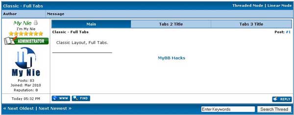 I've tried to make it as simple as possible, so we can edit it easily if we want to combine it with other XThreads application/layout. That's why I only deal with one template. Actually, I've used it in XThreads Garage Forum, but I think we can use the postbit tabs for other application too. So, I created this basic example.
