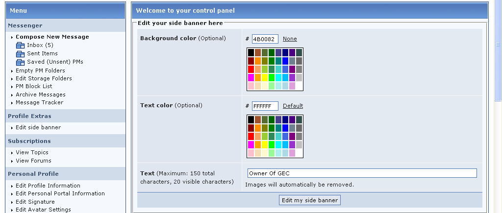 Is it possible to make a plugin called Side Banner, where a member can edit it from their user cp where it looks like this in members CP....