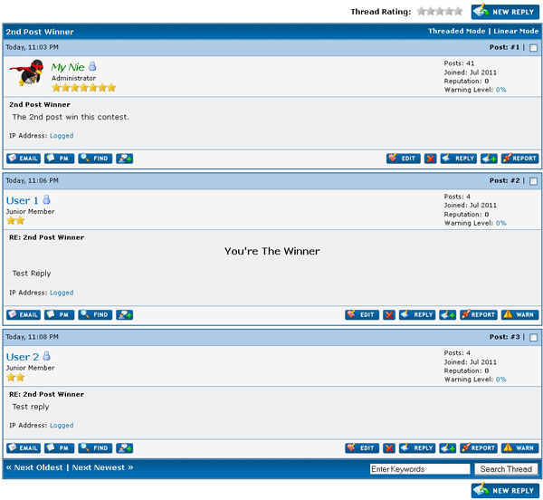 (03-04-2012 11:56 AM)ZiNgA BuRgA Wrote: [ -> ]You may wish to disable deleting posts in the forum so that people can't cheat by shifting their posts up or similar.