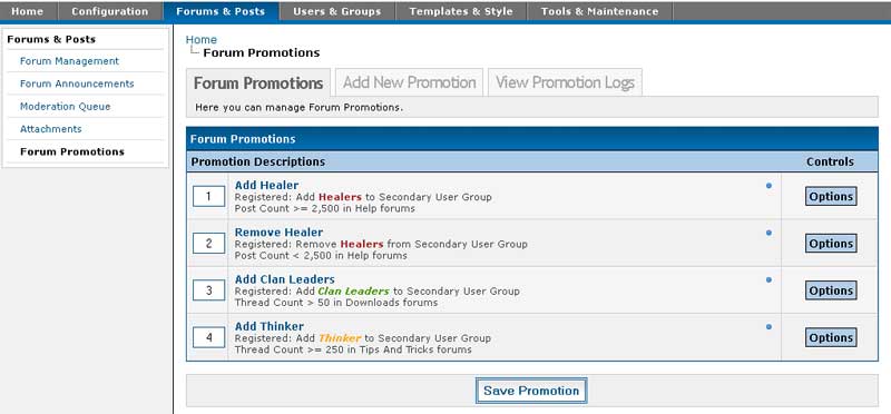 The promotion is based on the num of threads or posts of a user in a specified forum(s).