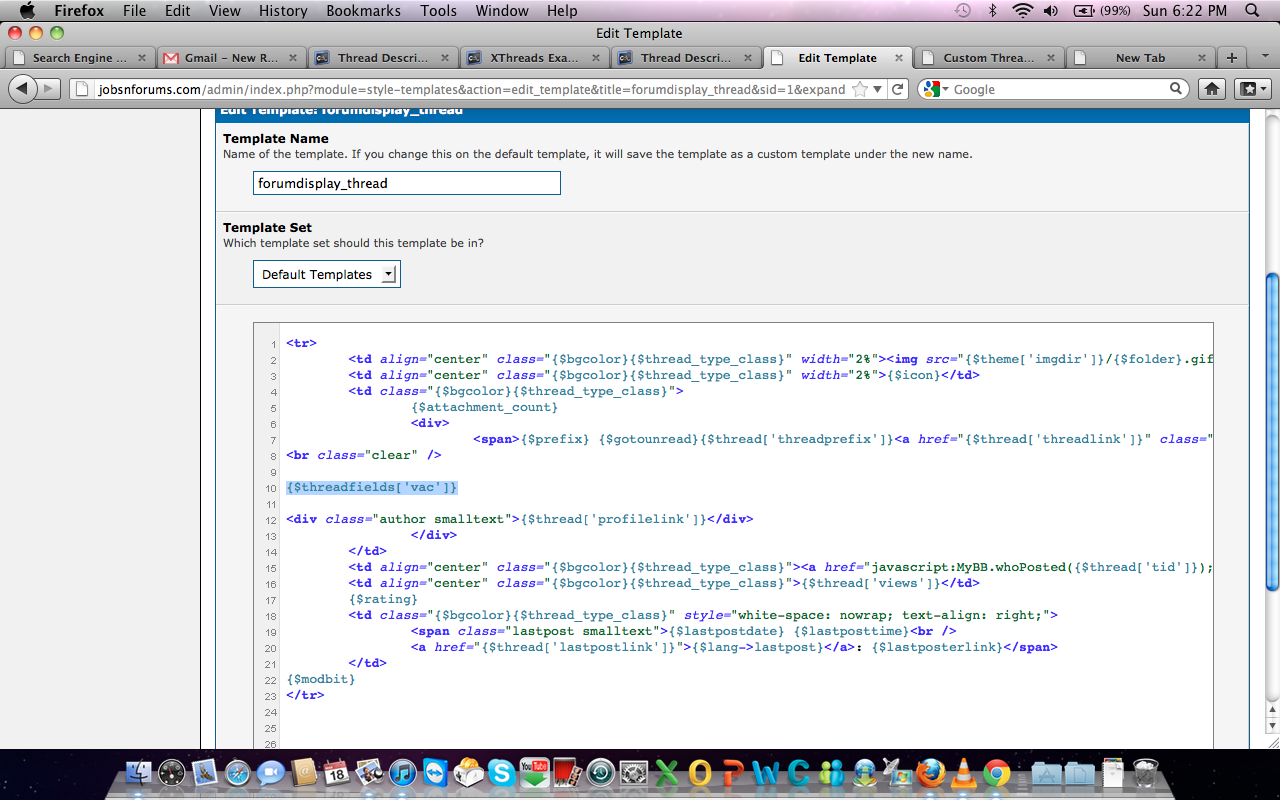 - Click on the forumdisplay_thread template to edit it