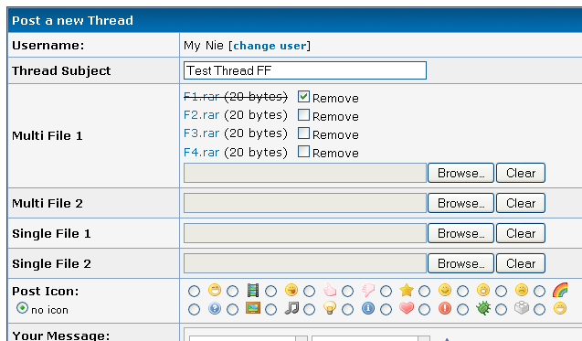 - Clear any files (or refresh page), then attach 2 or more files to the multi-valued inputs, and a file to one of the single-value inputs, then click Preview post. If everything uploaded successfully, check that you can reorder the files in the multi-valued inputs by dragging them around. Ticking the Remove checkbox should cause the file to be crossed out. Also the layout of the files in the multi-valued inputs should look reasonable. Lastly, try rearranging the files, hitting Preview post and confirming that the ordering is as you left it.
