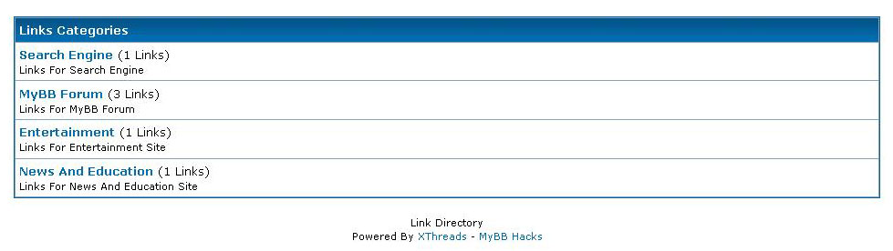 - Description: We will use this forum description as Link Categories Description. e.g: All links related to MyBB Forum.