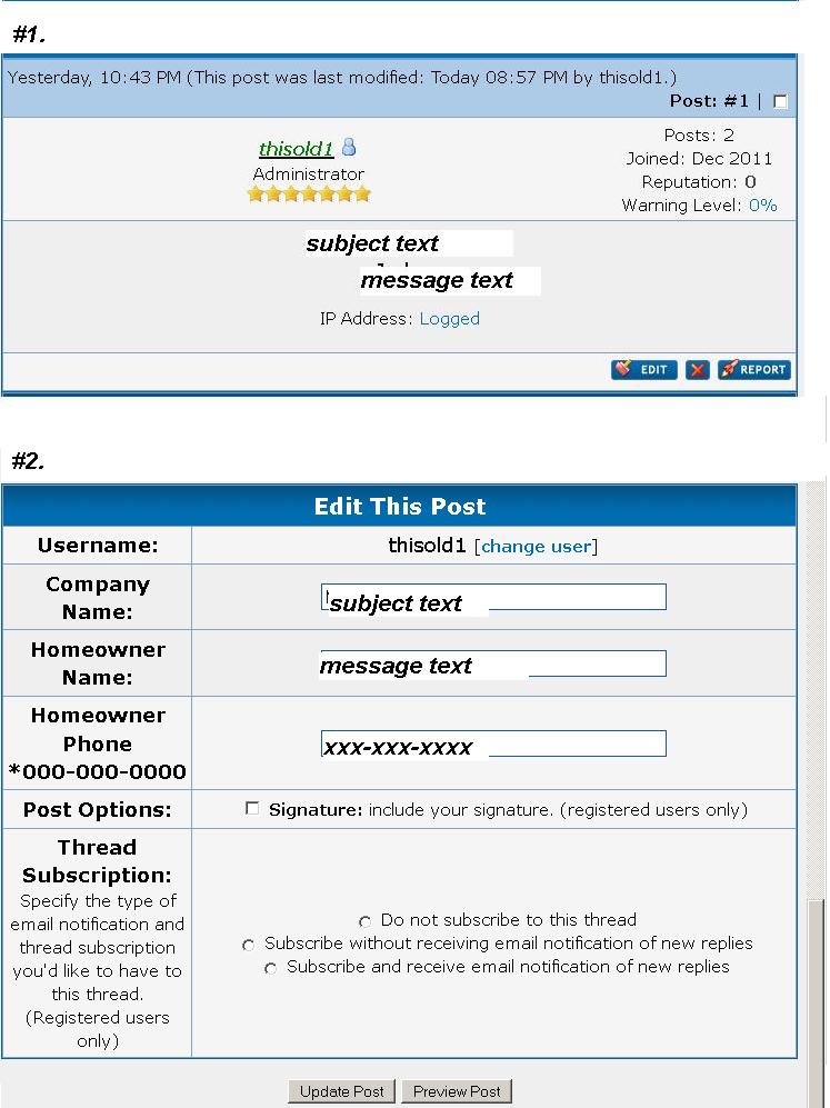 All textboxes (including xthreads) show when edit thread (image #2 on scrnshot attached, using custom formatted 'subject' and 'message' fields since couldnt figure simple workaround for eg 'subject missing error message').