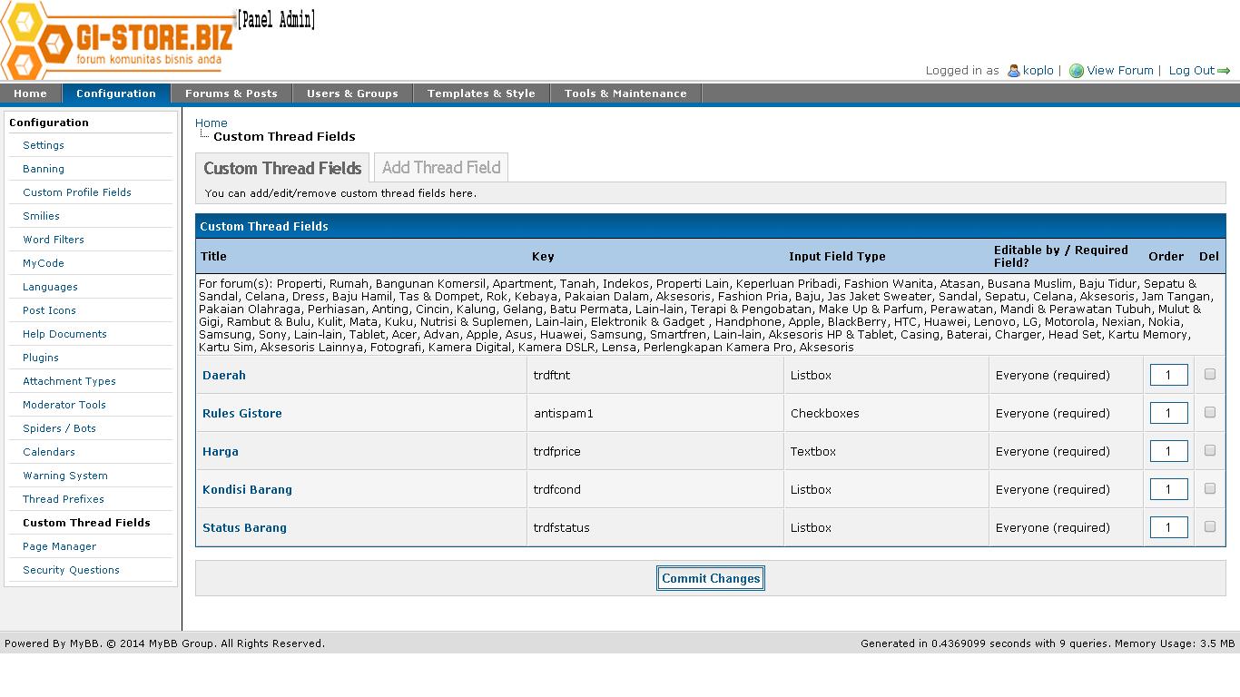when I want to add more number of rooms in the "Custom Thread Fields" and save it, nothing changes.