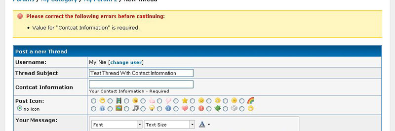 I want to make a field that requires your contact information when you post a new threard. Can you help me? I tried with XThreards, but I could not make it work. Thanks