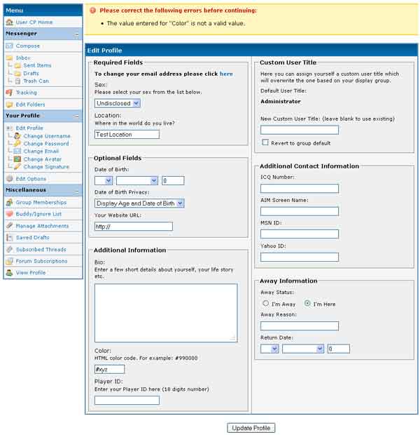 Regular Expression For Profile Fields