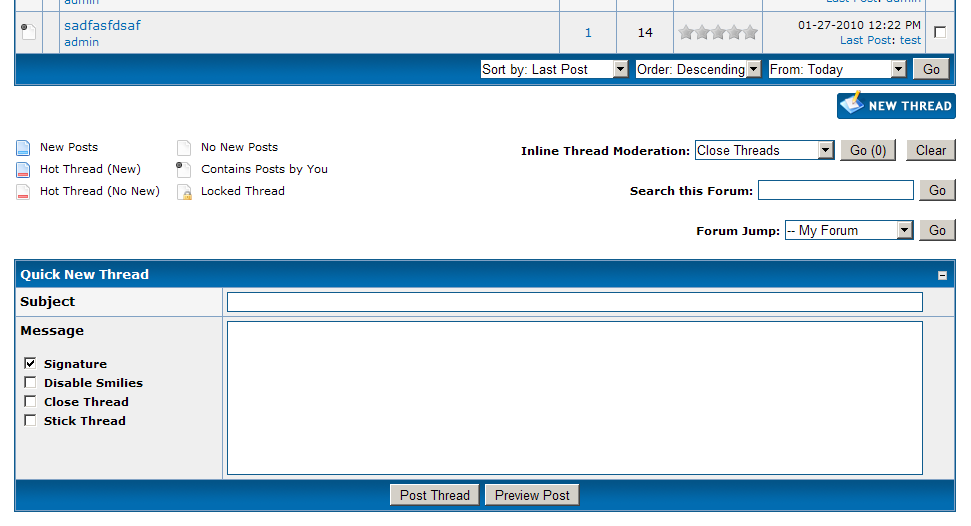 Similar to how the Quick Reply on thread pages works, this basically adds a Quick Thread box at the bottom of forum pages to allow users to post new threads without having to go to a new page.