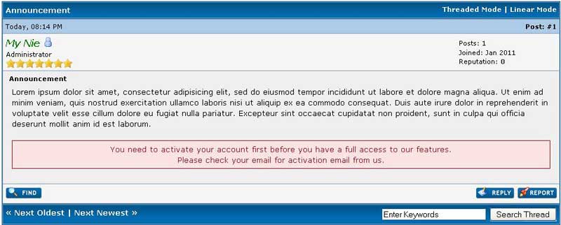 Awaiting Activation Views (can view general messages and message for Awaiting Activation Usergroup only):